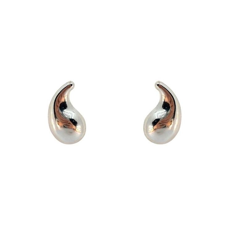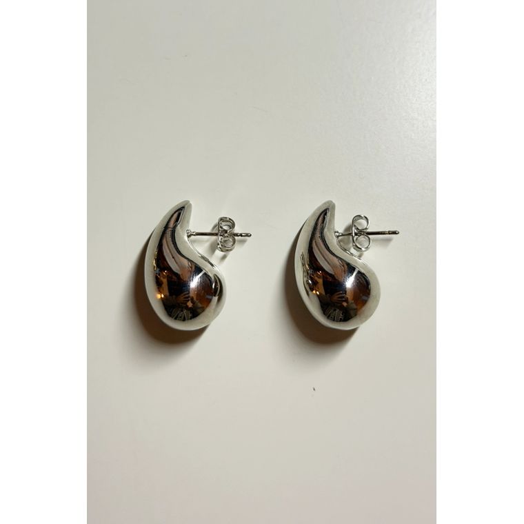 Seu design curvo e volumoso cria um efeito escultural na orelha, refletindo a luz com intensidade graças ao acabamento espelhado em banho prateado. É uma peça que se destaca pela originalidade, sem perder a delicadeza.