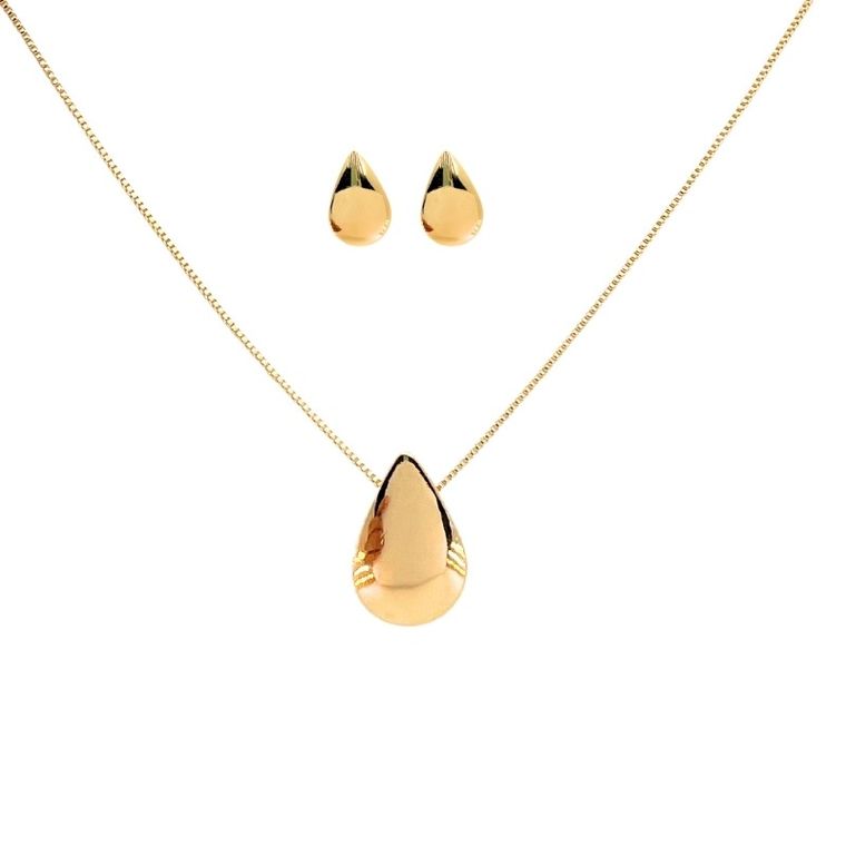 O Conjunto Gota Dourada é uma joia que combina simplicidade elegante e brilho marcante. Com design minimalista e acabamento impecável, ele traduz modernidade em sua forma mais pura: linhas suaves, curvas perfeitas e luminosidade intensa.